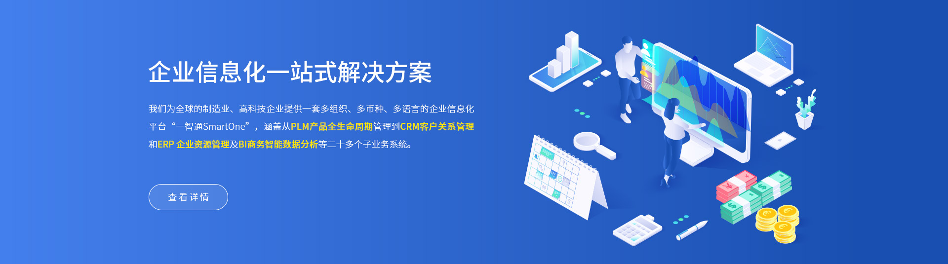 一智通(SmartOne)企業(yè)信息化一體化信息管理方案,涵蓋從 PLM 產品全生命周期管理 到CRM客戶關系管理和ERP企業(yè)資源管理及BI商務智能數(shù)據分析等二十多個子業(yè)務系統(tǒng)。